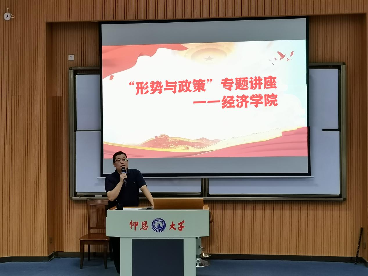 为深入学习宣传贯彻党的二十大精神,学习领悟习近平新时代中国特色社会主义思想,11月9日,买球官方网站在新区和昌教学楼思齐讲堂举办“形势与政策”专题讲座。买球官方网站党总支书记兼副院长吴晓伟担任主讲。买球官方网站2023级全体学生到场聆听。