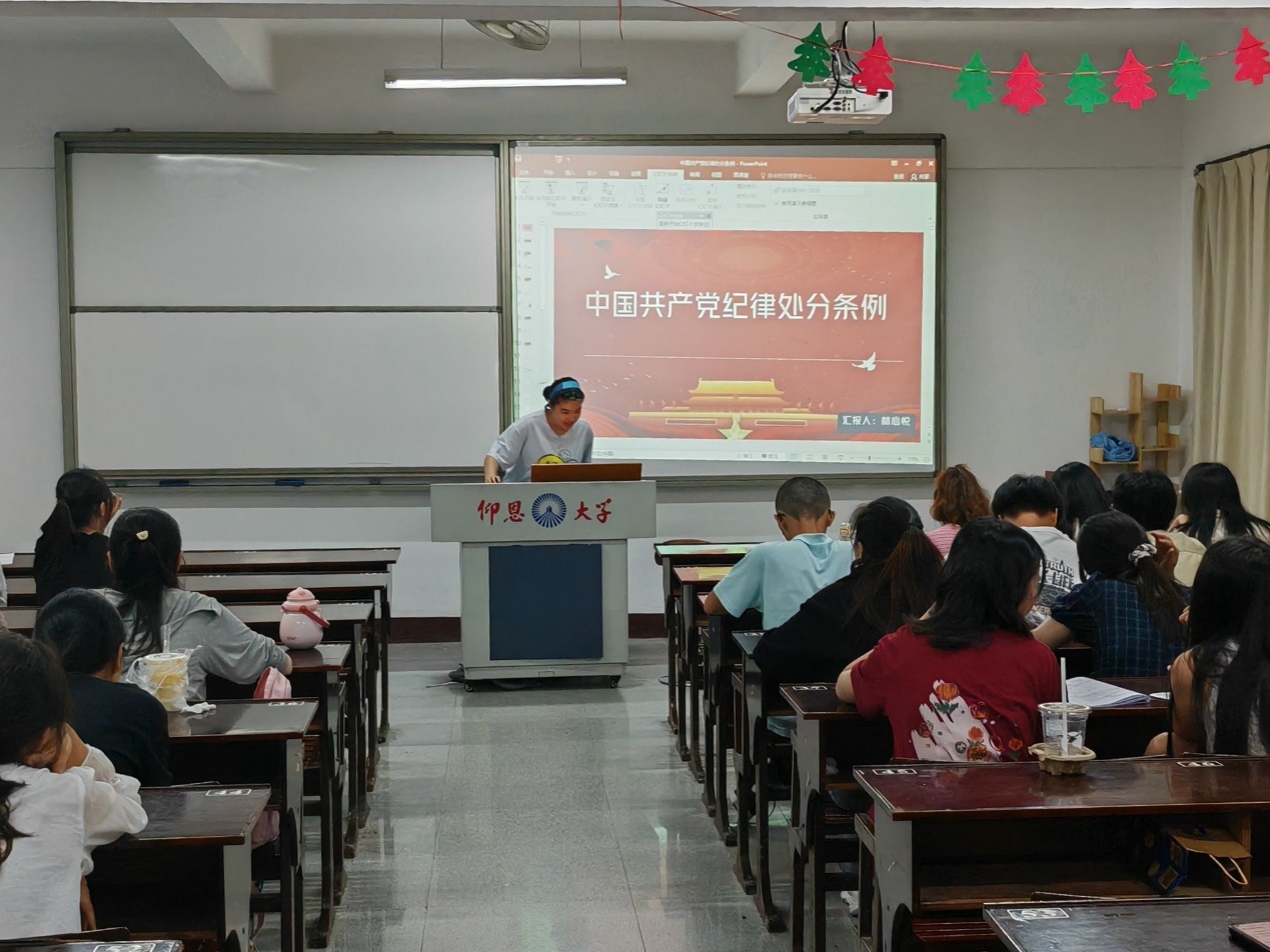 为了深入学习贯彻党的纪律处分条例,增强党员的纪律意识和规矩意识,2024年4月17日,买球官方网站金融系学生第一党支部在仰恩楼C2-301组织集中学习《中国共产党纪律处分条例》。支部全体党员、积极分子参加了此次学习会。