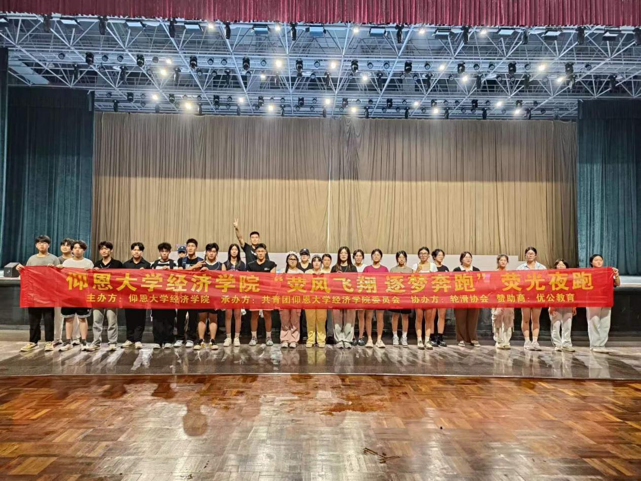 为了弘扬昂扬向上的体育精神,丰富我院学子的校园生活,绽放青春色彩,2024年6月16日晚,买球官方网站团委在文体中心举办以“荧风飞翔,逐梦奔跑”为主题的荧光夜跑活动,23级全体学生参加此活动。