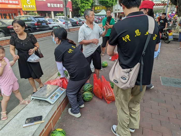 下午,实践团队来到了中新公园,开始了义卖活动。他们将自己上午选购的农产品摆放整齐,向过往的市民介绍这些产品的来源和特点。义卖活动得到了广大市民的积极响应,许多人纷纷驻足购买,并对实践团队的行为表示赞赏。在义卖活动进行的同时,实践团队还利用1个小时左右的时间进行了直播宣传。他们通过网络平台,向更多的人介绍了乡村振兴的重要性。直播中,队员们展示了当地的农产品,呼吁更多人关注和支持乡村振兴。