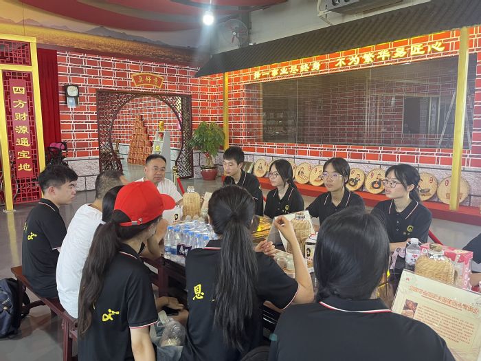 非遗传承,贡糖飘香。7月16日,买球官方网站“遇水叠桥”暑期实践队成员前往漳州市龙海区白水镇金旺旺食品有限公司继续开展对贡糖文化的深入调研活动。实践队成员与白水贡糖第五代传承人陈永川先生见面并展开座谈会,在陈永川先生身上,成员们感受到了老一辈非遗物质文化传承人丰富的非遗贡糖文化专业知识储备和坚定的理想信念,成员们十分动容,积极提问,各抒己见,现场讨论氛围浓厚。会后陈永川先生与成员拍照留念。通过这次座谈会,进一步加深成员们对促进非遗贡糖传承势在必行的决心。