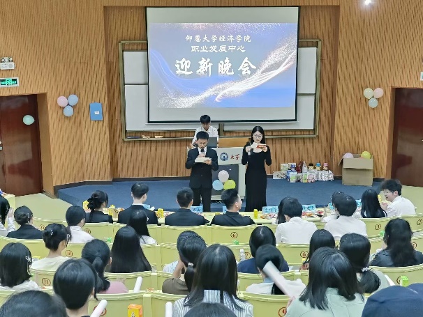 活动伊始,主持人介绍了本次活动的目的,并热烈欢迎2024级新生干事的加入。活动过程中,新老成员带来了相声,歌曲等节目,展现了青春活力。现场还穿插有趣的互动游戏以及抽奖活动,提升了到场人员的参与感,让欢乐洒满每一个角落。期间,职业发展中心还为每个到场的新干事准备了多样的零食与饮料,让其不仅能感受热情的气氛,还能体会到职业发展中心满满的温馨。