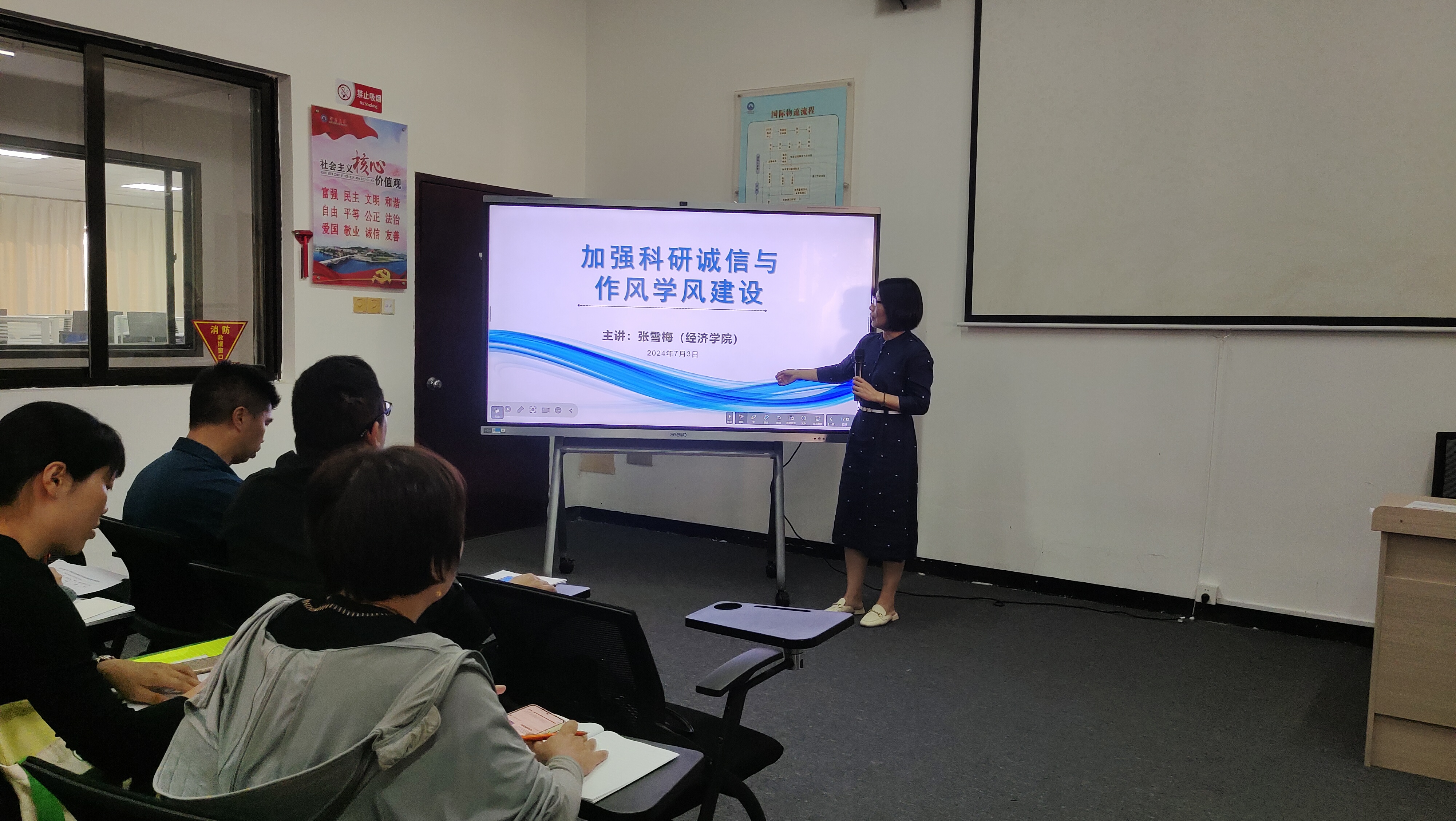 为进一步加强科研诚信与作风学风建设,提升教职工的政治理论素养,于2024年7月3日下午,买球官方网站在普照楼125教室组织全体教职工开展政治理论学习。本次学习活动由买球官方网站院长张雪梅主讲,主题为“加强科研诚信与作风学风建设”。此次活动旨在通过深化理论学习,推动学院科研诚信和作风学风建设迈上新台阶。