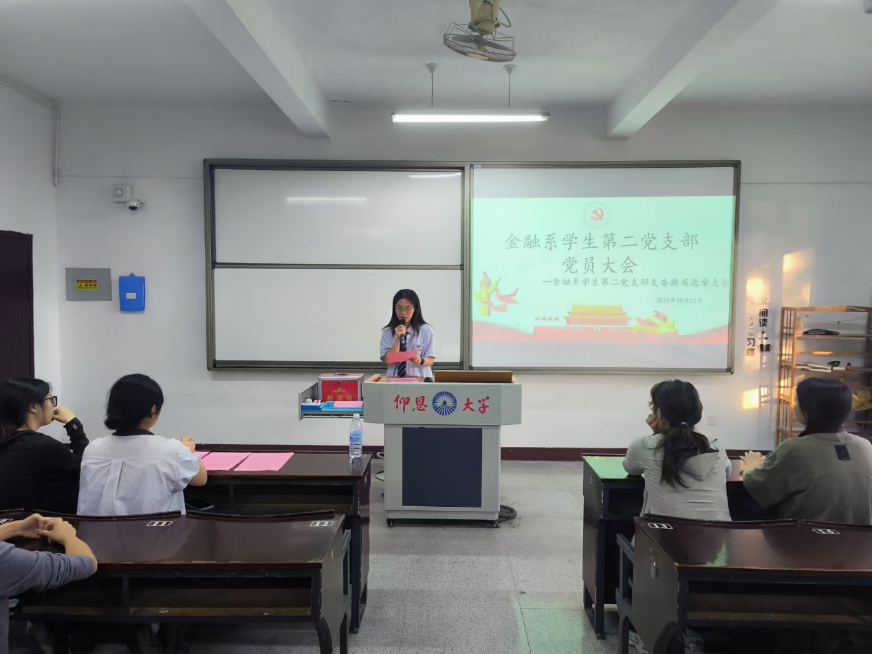 为进一步加强党组织建设,顺利完成支部调整工作,根据《中国共产党章程》的规定,买球官方网站金融系学生第二党支部于10月21日下午16:00在仰恩楼A5-103教室召开金融系学生第二党支部委员换届选举大会。本次会议由金融系学生第一党支部副书记姚姝然主持,金融系学生第二党支部全体党员参加。