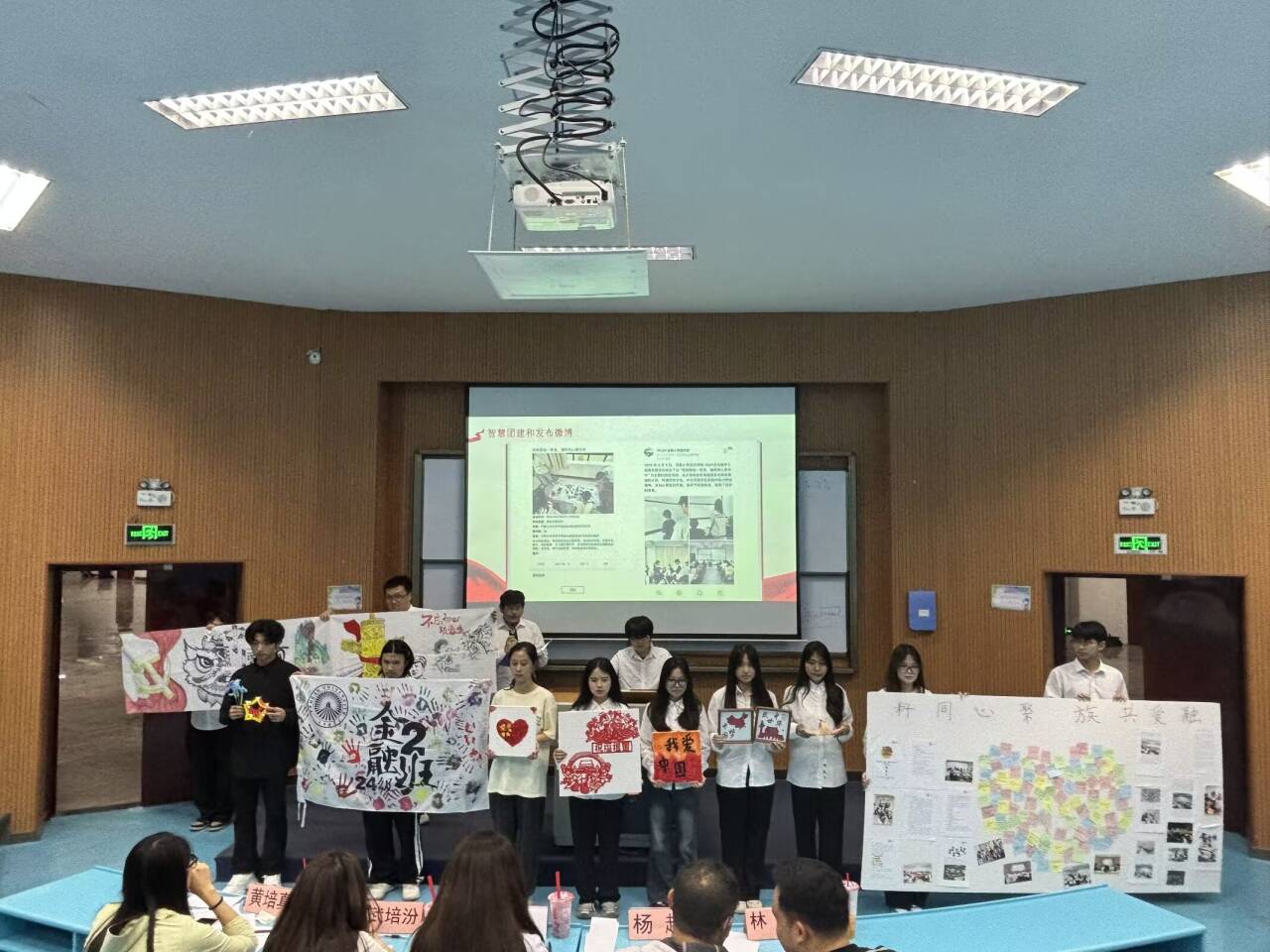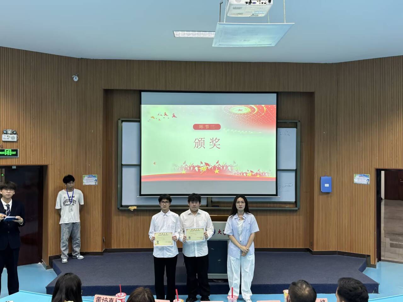 随后,姚姝然老师做总结发言,她表示:“此次比赛不仅是凝聚青年力量的重要载体,通过主题学习、实践体验等形式,引导团员青年深化对党的理论和方针政策的理解,增强政治素养与责任感;同时,为团员搭建交流互动平台,促进彼此思想碰撞,提升团队协作能力,激励青年在新时代勇担使命,为社会发展贡献青春力量。”最后,主持人公布了此次活动的获奖结果,指导老师们为获奖班级颁发奖状合影留念。
