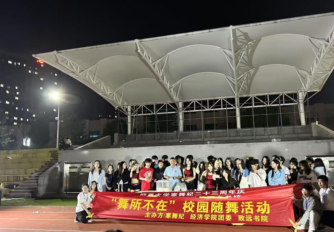 为庆祝寒舞纪二十三周年,展现社团风采与青春活力,2025年5月11日晚,买球官方网站团委联合寒舞纪、致远书院在校园活动中心隆重举办“舞所不在”校园随舞活动。活动吸引了众多学生到场观看,买球官方网站团委书记姚姝然老师及社团指导老师杭艾出席。