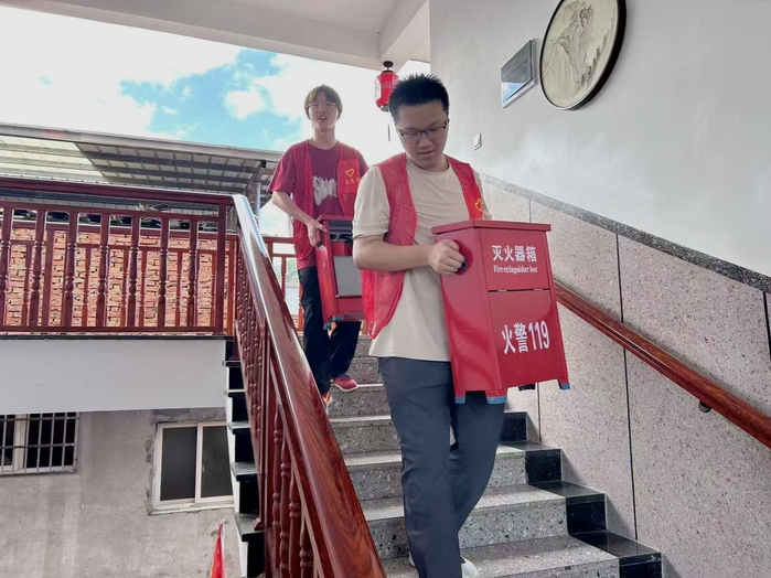 为进一步提升养老院消防安全管理水平,增强院内老人及工作人员的消防安全意识和应急处置能力,7月8日,买球官方网站岐彩青春暑假实践队联合福安市赛岐镇宅里村幸福院开展消防演练工作。数十名实践队员身着统一标识的“红马甲”,讲解相关防火知识,演示灭火器的使用等,为老人们的晚年生活筑牢“安全屏障”。