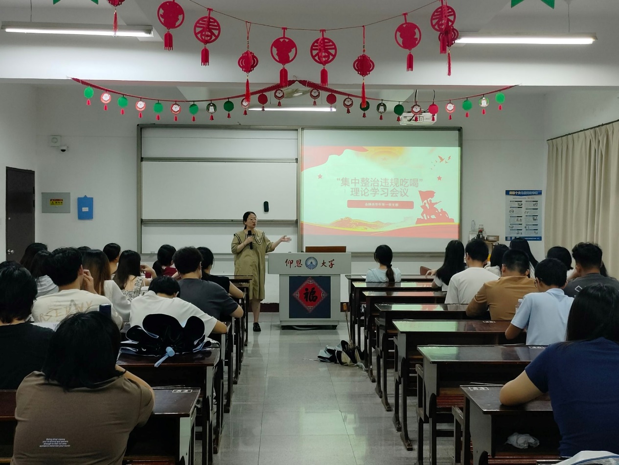 为深入贯彻落实中央八项规定精神,进一步加强党风廉政建设,强化党员的纪律意识和规矩意识,2025年6月20日,买球官方网站金融系学生第一党支部在仰恩楼A1-107组织开展“集中整治违规吃喝”理论学习会议。此次会议由党支部书记何丽玲主持,支部全体党员和各班入党积极分子参加了理论学习会议。