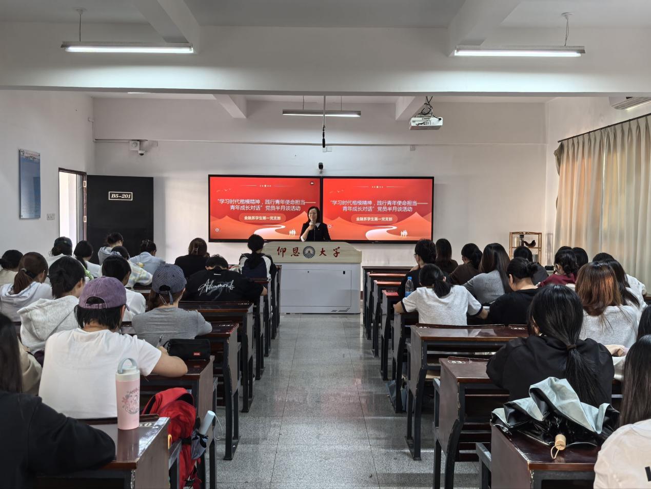 为深入学习时代楷模实干精神,引导青年党员与积极分子勇担使命,2025年11月6日下午,买球官方网站党总支联合金融系学生第一党支部在仰恩楼B5-201组织开展“学习时代楷模精神,践行青年使命担当”党员半月谈活动。教工支部刘红艳老师、杨娣老师、各班党员及入党积极分子参加了此次活动,通过分享、讨论、互动等形式,凝聚时代青年实干力量。