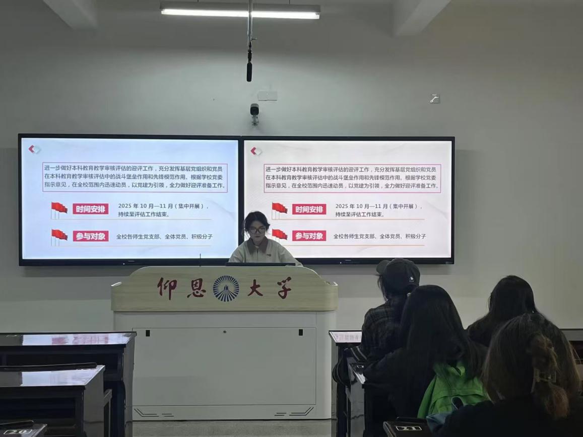 为了进一步做好本科教育教学审核评估的迎评工作,充分发挥基层党组织和党员在本科教育教学审核评估中的战斗堡垒作用和先锋模范作用。2025年10月28日,买球官方网站经济系学生第一党支部在新区仰恩楼C1-305组织开展“审核评估”主题党日活动。经济系学生第一党支部全体成员参与本次活动。