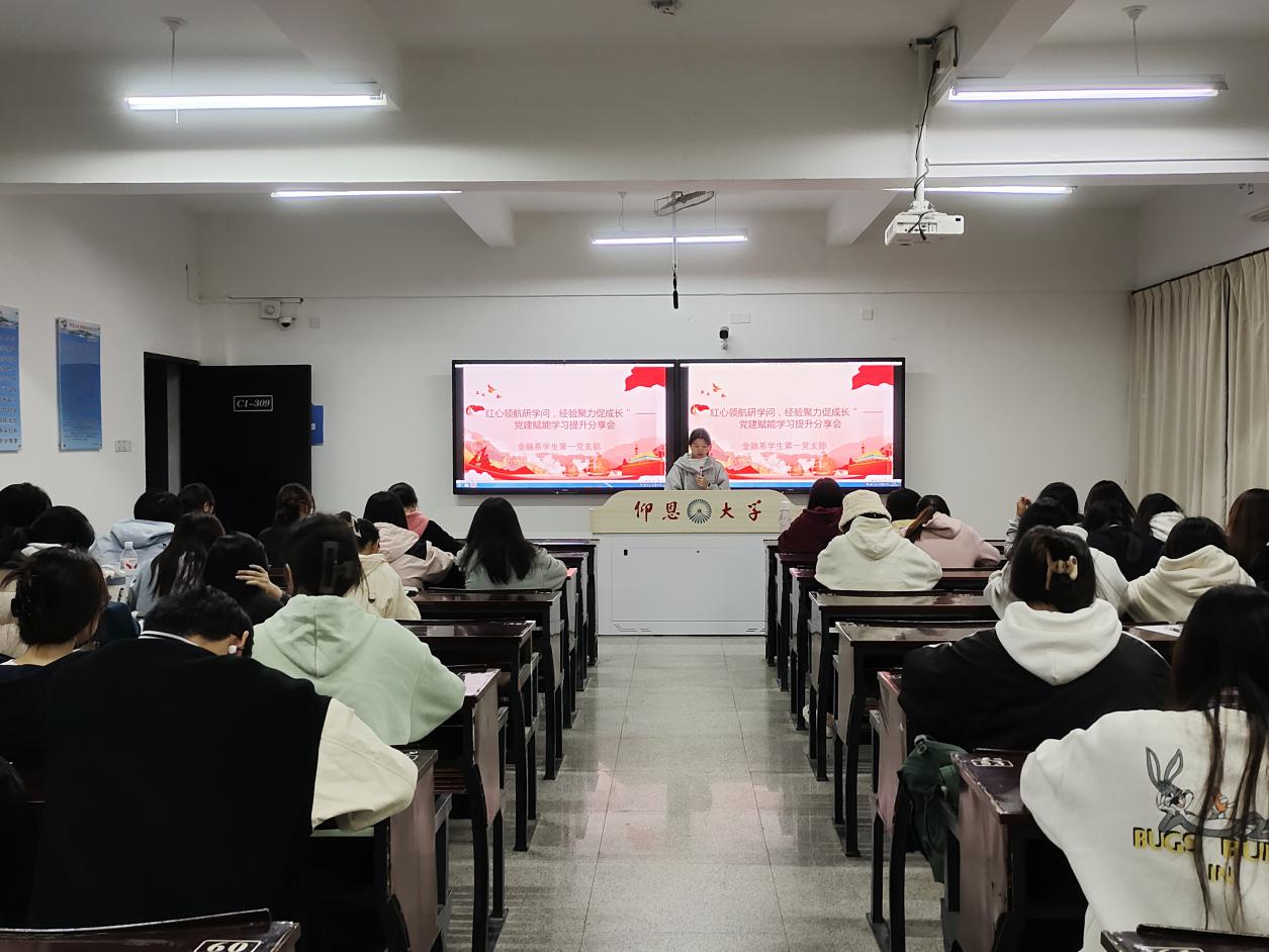 为发挥党建引领作用,助力学生破解学业备考难题,2025年11月19日晚上19:00,买球官方网站党总支、金融系学生第一党支部联合致远书院和宏船书院在仰恩楼C1-309教室开展“红心领航研学问,经验聚力促成长”党建赋能学习提升分享会。此次活动邀请了邱盛一、谢婧琳和王子玉三位优秀同学主讲分享,支部书记何丽玲老师现场指导,吸引了众多有计算机、英语、数学等提升需求的同学们参与。